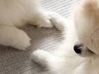 ポメの赤ちゃんと対面した『先輩猫』 表情に「笑った」「どっちもモフモフ」