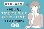 【誕生月×血液型】9月上旬、「今は恋愛を控えたほうがいい女性」TOP6<前半>