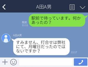 【誤爆】「似た名前がゆえの…」待ち合わせに中々こない友人に催促LINE。すると、“名前が似ている”と思っていた相手から返事が…?