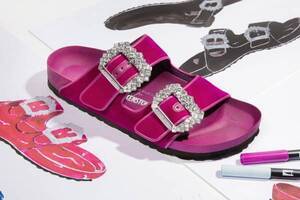 ビルケンシュトック×マノロ ブラニク、クリスタル&ベルベットのサンダル「アリゾナ」など