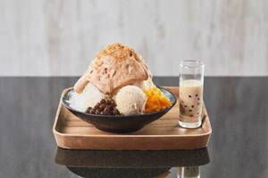 タピオカかき氷がザ ストリングス 表参道で、チャイのふわふわエスプーマソース&追いタピオカ