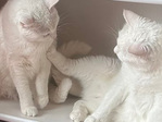 じゃれ合う2匹の白猫 いた『場所』が?「いやいやどうしてこうなった」