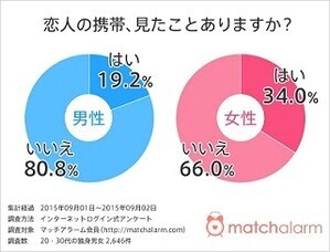 独身女性の3人に1人が「恋人の携帯を見たことがある」と回答 - その理由は?