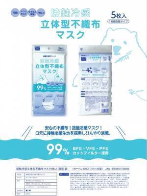 大好評“ひんやり冷たい接触冷感マスク”が今年も発売!「接触冷感不織布マスク5枚入り(個包装)」