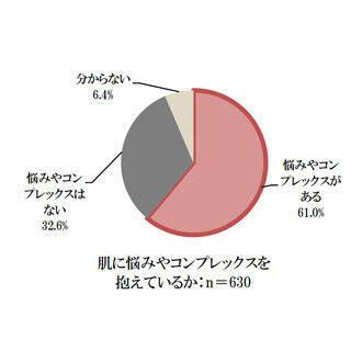 「肌に悩みやコンプレックスがある」と回答した人を地方別に集計したところ、東北地方がもっとも多かった。平均は61.0%であるのに対し、東北地方在住者は74.0%となっている。2位には中国地方、3位には九州地方がランクインした。
