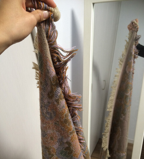 1.ストールの端っこ(カドの部分)を持ち、ストールが一本のラインになるようにします。