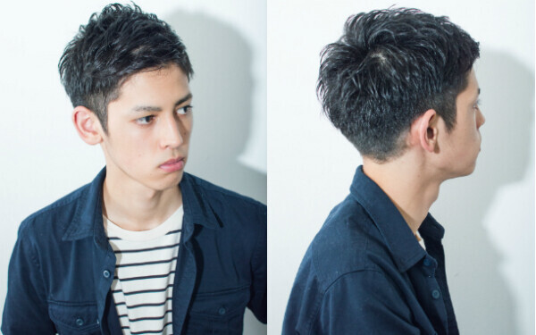 男らしい黒髪スタイルで顔の印象が力強く見えるスタイルです。