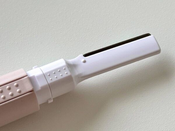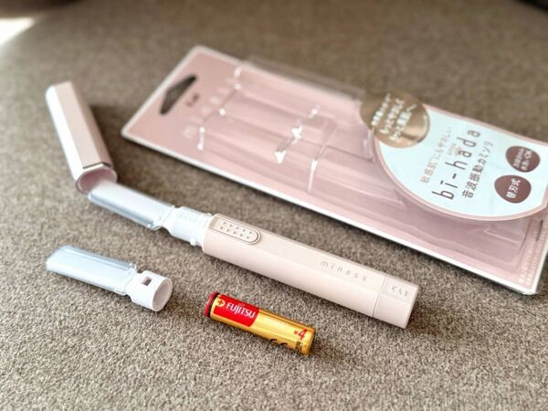 化粧ポーチに入る大きさで、かさばらずに持ち運びにも便利なサイズです◎付属品には電池一本と替刃がついています。さっそく電源をON!