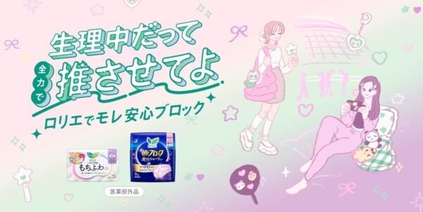 生理期間において「推しは癒し」と感じている一方で、生理中の推し活においては多くの人が不便さを感じているという実態を受け、ロリエは生理中でも全力で推し活をしたいひとを応援する特設サイト「生理中だって全力で推させてよ ロリエでモレ安心ブロック!」を公開しました。
