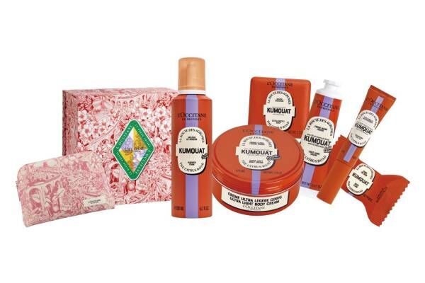 まず注目すべきは、プロヴァンスの陽射しをたっぷり浴びたカムクアット(キンカン)が香る「カムクアット シア」が主役のコフレ。明るい力強さとほのかなビター感が織りなすフレッシュな香りに、保湿成分・シアバターを加えているのが特徴だ。