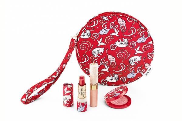 目玉アイテムは、ポール & ジョーの人気アイテム“猫リップ”の第3弾「リップスティック リミテッド 003」。スティックの外側は、パールが煌めくシャンパンのようなリップベースで、内側は、塗っても塗っても猫が顔を出すレッドのリップカラーになっている。リップベースとリップカラーを混ぜることでみずみずしく華やかな仕上がりを演出する。