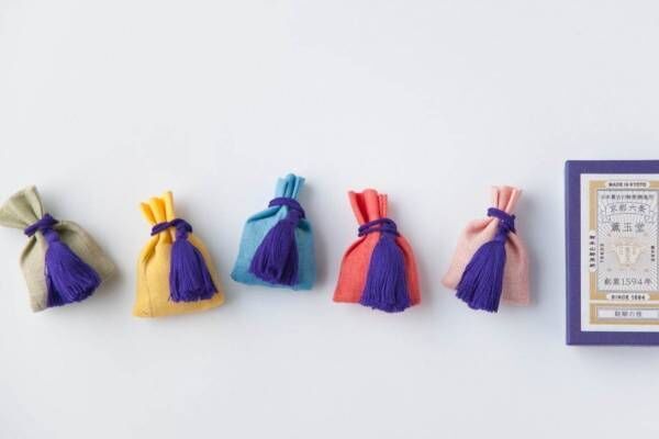 色とりどりの「香袋」は、クローゼットや鞄に忍ばせるとほのかな香りを楽しめる。線香の香りをアレンジし、京都由来の香りを詰め込んだ。