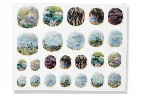 店頭展開されるのは4人の画家をモチーフにしたネイルシール。「モネの世界をまとうネイルシール」は、印象派を代表するフランスの画家クロード・モネの、淡くやわらかな色遣いを再現したもの。極細の筆を使い、モネならではの自然のきらめきや空気感までを、細やかに表現している。