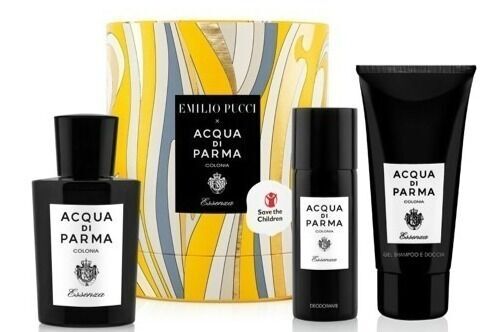 セット内容:アクア ディ パルマ コロニア エッセンツァ オーデコロン 100mL、同シャワージェル 75mL、同ボディスプレー 50mL