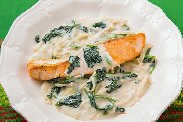 ■鮭のムニエル〜えのきほうれん草のクリームソース