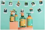ピンクのバッグ・イン・バッグセット旅行に便利で色鮮やかなフューシャピンクのバッグには、モイスチュアクレンジングジェル(20g)、モイスチュアソープ(7g)、モイスチュアエッセンス(5ml)、モイスチュアナイトジェル(5g)、泡立てネットが入っている。