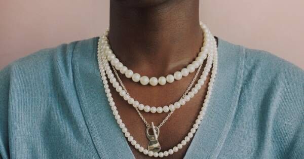 80年代のイギリス音楽シーンで誕生したムーブメント"New Romantic"。当時のファッションをインスピレーションとして、現代ファッションのひとつの潮流となっている「ジェンダーレス」を〈ReFaire〉が解釈した秋冬シーズンの新作コレクションは、大粒の淡水パールを大胆に使ったネックレスやメンテナンスツールをモチーフとしたデザインのブレスレットなど、甘さと野暮ったさが同居する独特な雰囲気を醸し出しています。
