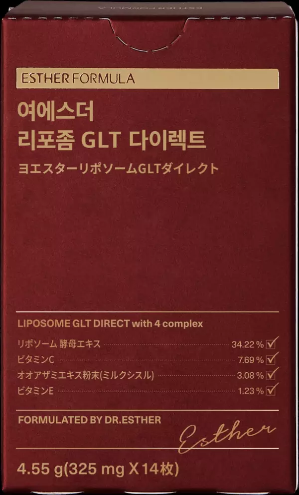 「ヨエスターリポソームGLTダイレクト」は韓国で2021年の発売以来、数回のアップグレードを通じて累計販売数4億枚を突破した(※1)ブランドを代表する商品で、消化過程で失われる可能性のある肌の健康成分をフィルムタイプで簡単に摂取。口腔粘膜に貼り、毛細血管に直接吸収させることで、栄養成分の損失を最小限に抑え、リポソーム製剤工法を適用(※2)して酵母エキスの吸収力をさらに高めました。