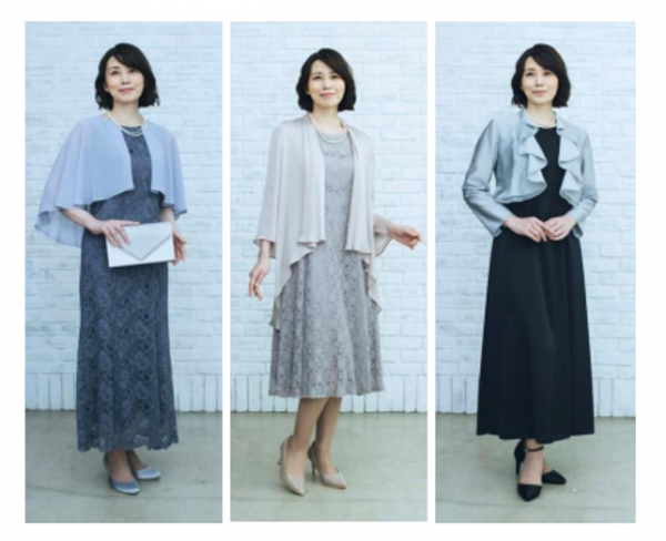 今回開始するレンタルサービスでは計8タイプのドレスを用意。スカート丈はロングとミドルで各所にレースをあしらった華やかで上品なデザインが特徴です。カラーはネイビー・グレー・ホワイトなど幅広く取り揃え、7号から15号の5サイズから選ぶことができます。レンタル価格は税込10,890円・13,200円・16,500円の3種類で、オプション商品としてフォーマルバッグ(価格:税込1,650円)もレンタルできます。