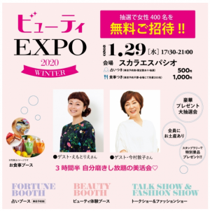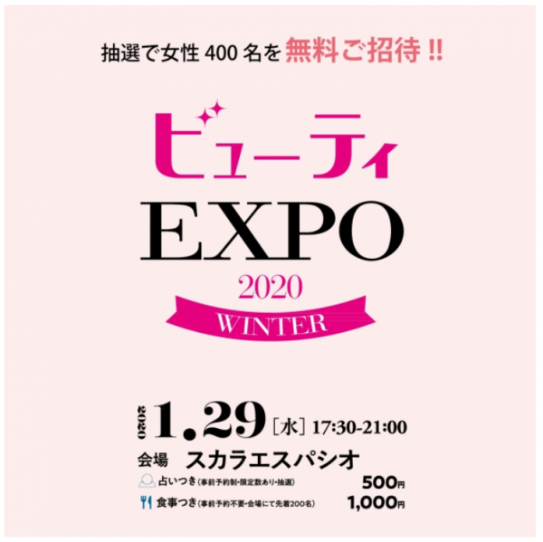 「ビューティEXPO 2020 WINTER」では、現在参加者を募集中。専用ページから応募した人の中から抽選で400人を無料で招待します。1次締め切りは2020年1月13日、2次締め切りは2020年1月20日となっています。