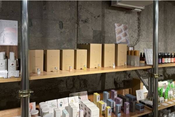 店舗では、シャンプー、コンディショナー、ボディーソープなどのバスアイテムやクレンジングフォームやトーンアップUVクリームといったスキンケアアイテムを、世界初のクラフトパッケージを採用したパウチ入りで販売。