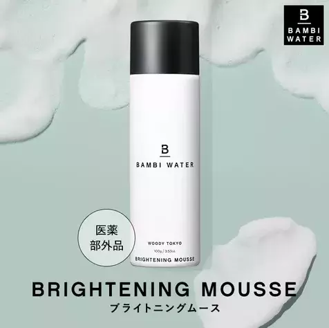 贅沢処方でさまざまな肌悩みにアプローチ「BAMBI WATER ブライトニングムース」は、ダブルの美白有効成分と甘草由来の抗炎症成分により、美白・シミ予防と肌荒れ予防が同時にできる炭酸泡パック美容液です。炭酸ガスの効果で肌の血行が促進され美容成分をより深部まで届けるとともに、不要な角質や油脂などをオフして透明感のある肌へ導きます。