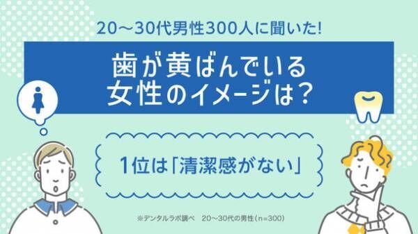 株式会社デンタルラボ(本社:東京都渋谷区)の運営するセルフ美容デンタルサロン「デンタルラバー」は、20~30代男性300人にアンケートを行い、歯が黄ばんでいる女性について、面と向かって言えない本音を調査。「歯が黄ばんでいる女性のイメージは?1位は『清潔感がない』」に関するインフォグラフィックを制作・公開しました。