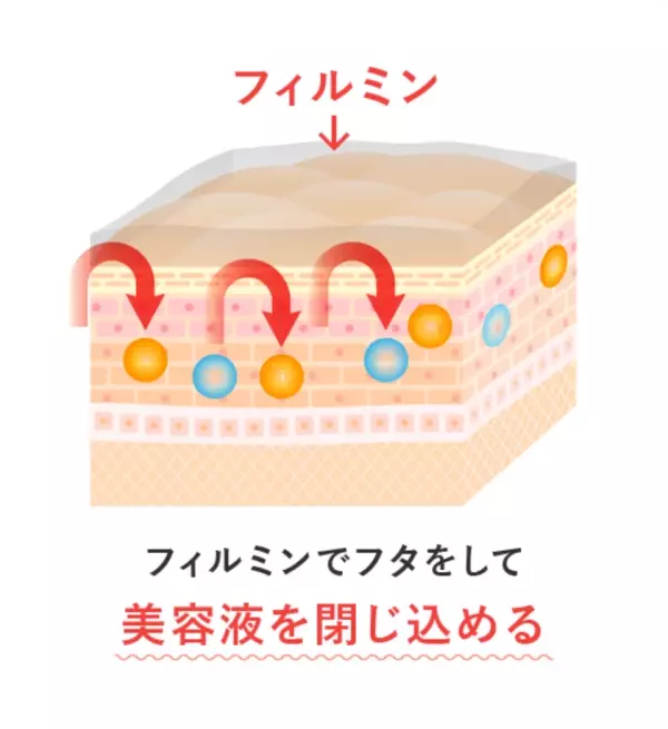 塗布後数分でフィルム状となって、肌をラッピング。美容液の蒸発を防ぎ、角層への浸透を助けます。