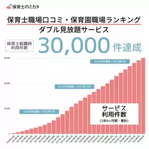 転職・就職検討中の保育士利用30,000件達成!保育士職場口コミ・保育園職場ランキングのダブル無料見放題サービス【保育士のミカタ】