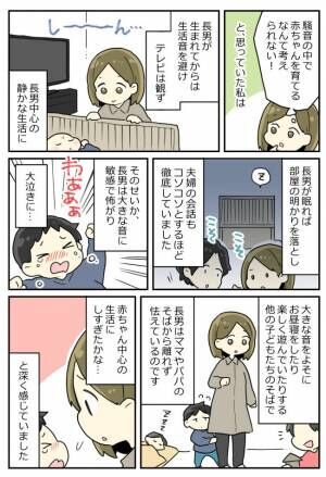 しかし、私は「騒音のなかで赤ちゃんを育てるなんて考えられない!」と長男が生まれてからは生活音を避け、テレビは観ず、音楽を聴く場合はクラシック。長男が眠れば部屋の明かりを落とし、夫婦の会話もコソコソとするほど徹底していました。