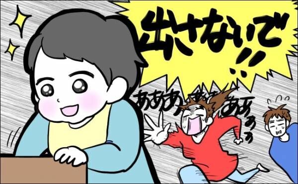 子どもの心の出したい欲求・開けたい欲求が湧き出るたびに、妻の叫び声が……。わが子の後ろを追いかけながら出したものを片付けていく、妻と子どものイタチごっこ。妻も疲労困憊でした。
