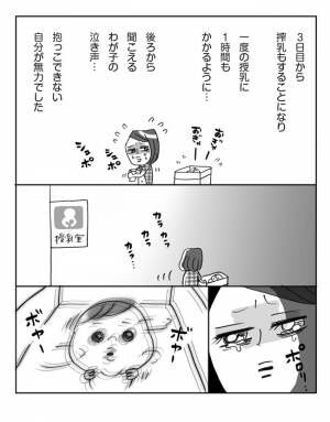 後ろから聞こえるわが子の泣き声。早く抱っこしてあげたいのにできない自分が無力でした。授乳室から部屋へ戻る病院の暗い廊下で、思わず涙が。泣いている私をキョトンと見つめる娘。