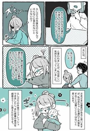 「あそこの家族、見て…」楽しみにしていた、産後初めての外食!⇒見知らぬ人からショックな発言が…