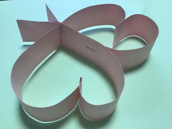 【1】紙を細長く切る(2本)。先を4㎝残してホッチキスで止める。