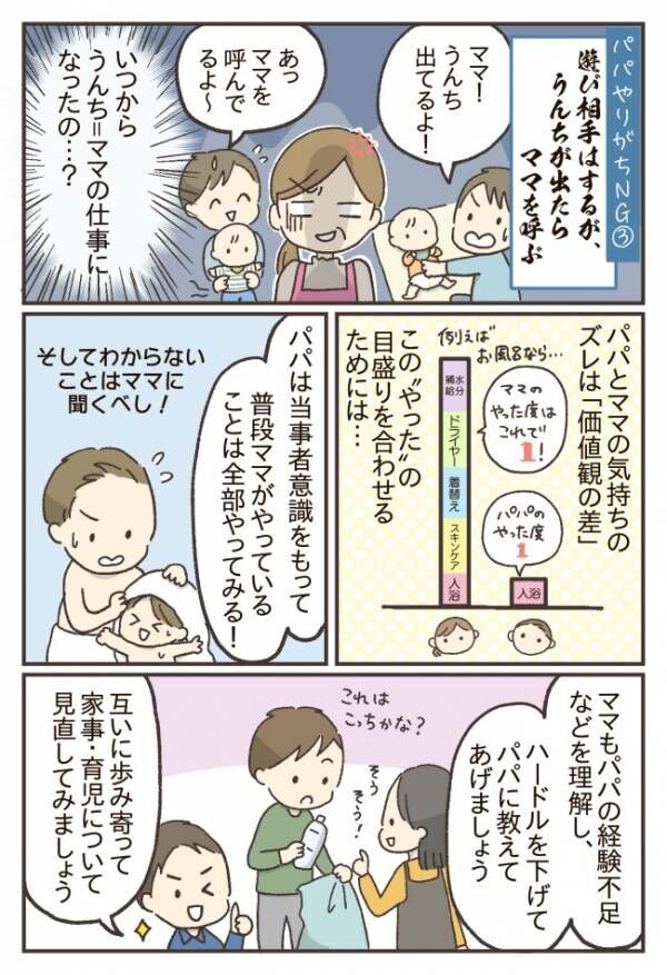 パパだけが悪いのではない。ママのハードルが高いのです(笑)パパがじょうずにできないと、ママはイライラするでしょ?」