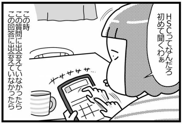 ようやくタイトルの言葉にたどりついたユキミさん。初めて知った「HSC」について、とことん調べ始めるのでした。次回、HSCのチェックリストを知ることになり……!?