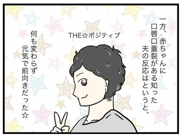 口唇口蓋裂をもって生まれてくる赤ちゃんの苦難を思い、不安でいっぱいになってしまう私。一方夫は元気で前向き! 「不安以上に楽しみや期待が大きい」と話してくれて、少しずつ前を向けるようになっていきました。