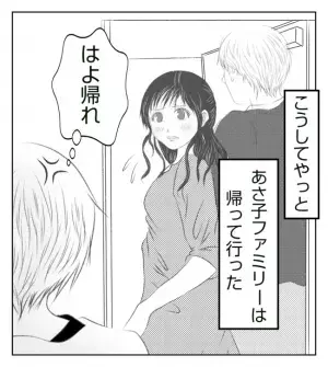 自分たちの食べるものだけ買って遊びに来て家を汚し、暴れまわり、おもちゃを壊して(そのあと直して)帰っていったあさ子ファミリー。嵐のように過ぎ去り、非常識の限りを尽くしたこの家族に、うんざりしてしまうのも無理はないですね。いったい何をしに来たのでしょうね……。