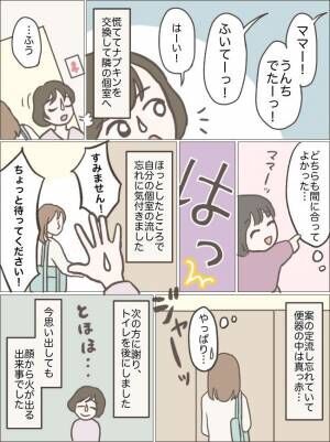 「待って!入らないで!」思わず冷や汗!娘に気を取られスーパーのトイレでまさかの失敗!