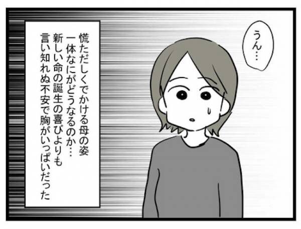 「すぐ行くから」と電話を切った母は、「さえ、りな……出産したって……昨日……」と、やっとの思いで言葉を発します。