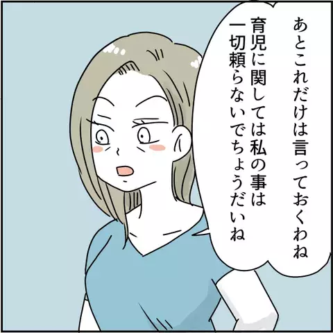 産まれたばかりのヨツバさんの娘に「かわいくない」と言った母親は、さらに「育児に関しては一切頼るな」「今時の若い親はすぐ両親を頼る」「私も親に頼ったことなんてないし、全部1人でやったんだから」と釘を刺してきました。母親の性格をよく知っているヨツバさんは、「もとから頼るつもりなんてない」と言い返したい気持ちをグッとこらえるのでした。