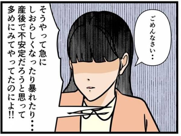 その事実を知ったてっぺいは「俺がどんな思いして金稼いでると思ってんだよ!!」「そうやって急にしおらしくなったり暴れたり……産後で不安定だろうと思って多めにみてやってたのによ!!」とめぐみに激怒したのでした。