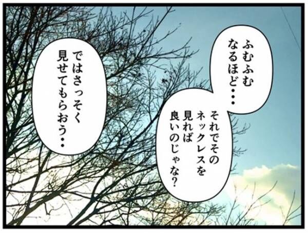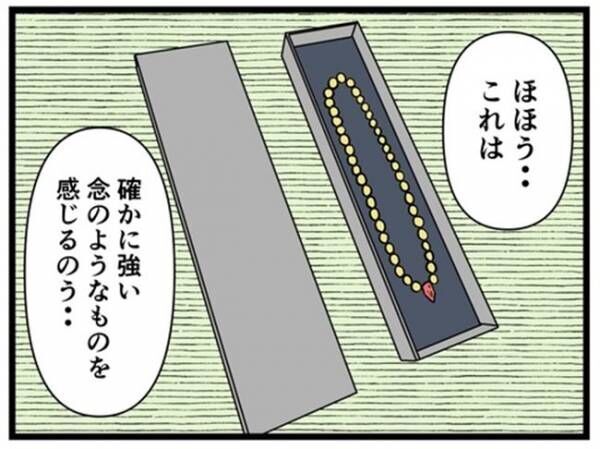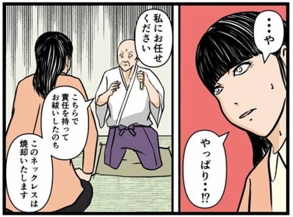 実際にネックレスを見た神主さんは「ほほう……確かに強い念のようなものを感じるのう……」と言いました。確かにめぐみが持ってきたネックレスには邪悪な怨念(おんねん)がこもっていること、別の何かから身を守るためにあえて邪悪な怨念をこめてそれを身につける風習は昔からよくあることだと言葉を続けます。