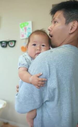 104万回再生!「え、ママじゃないやん…」パパだと気づいた赤ちゃんの反応がかわいすぎる♡と話題!