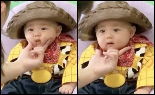 「た、たまらん…♡」生後100日を迎えた赤ちゃん⇒撮影スタッフさんがほっぺをムニムニすると…!?