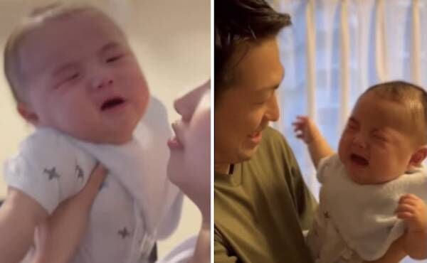 343万回再生!パパの抱っこで泣いてる赤ちゃん→ママにバトンタッチした瞬間の変化に思わず爆笑♡