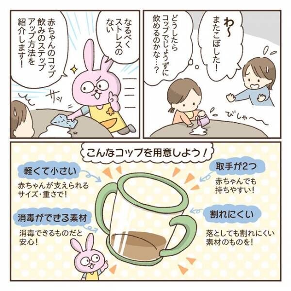 どうやって飲むかすらわかりません。焦らず、赤ちゃんのペースに合わせてコップ飲みの練習をしてあげてくださいね。