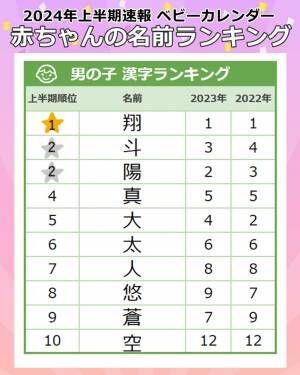 2024年上半期、男の子の名前の漢字ランキングTOP10を発表します。