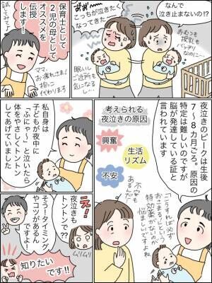 保育士の中田馨さんが、赤ちゃんの夜泣き対策についてお話ししてくれました。夜泣きの原因や実体験を踏まえた対策などをマンガで解説!