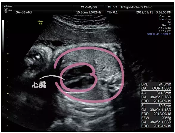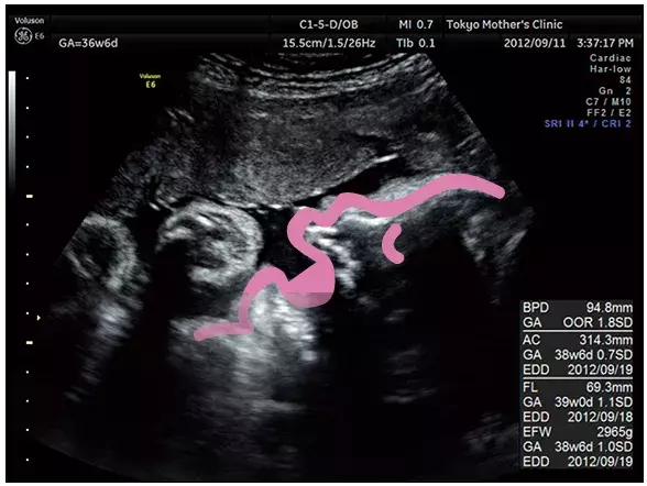 赤ちゃんは子宮内で自由には動けないように。また、この頃の超音波検査は、通常の赤ちゃんの成長ぶりを確認するとともに、逆子などの理由で帝王切開になる可能性はないか、赤ちゃんの下がり具合や子宮の収縮などでお産が近づいているかなど、お産の進み方を推測します。